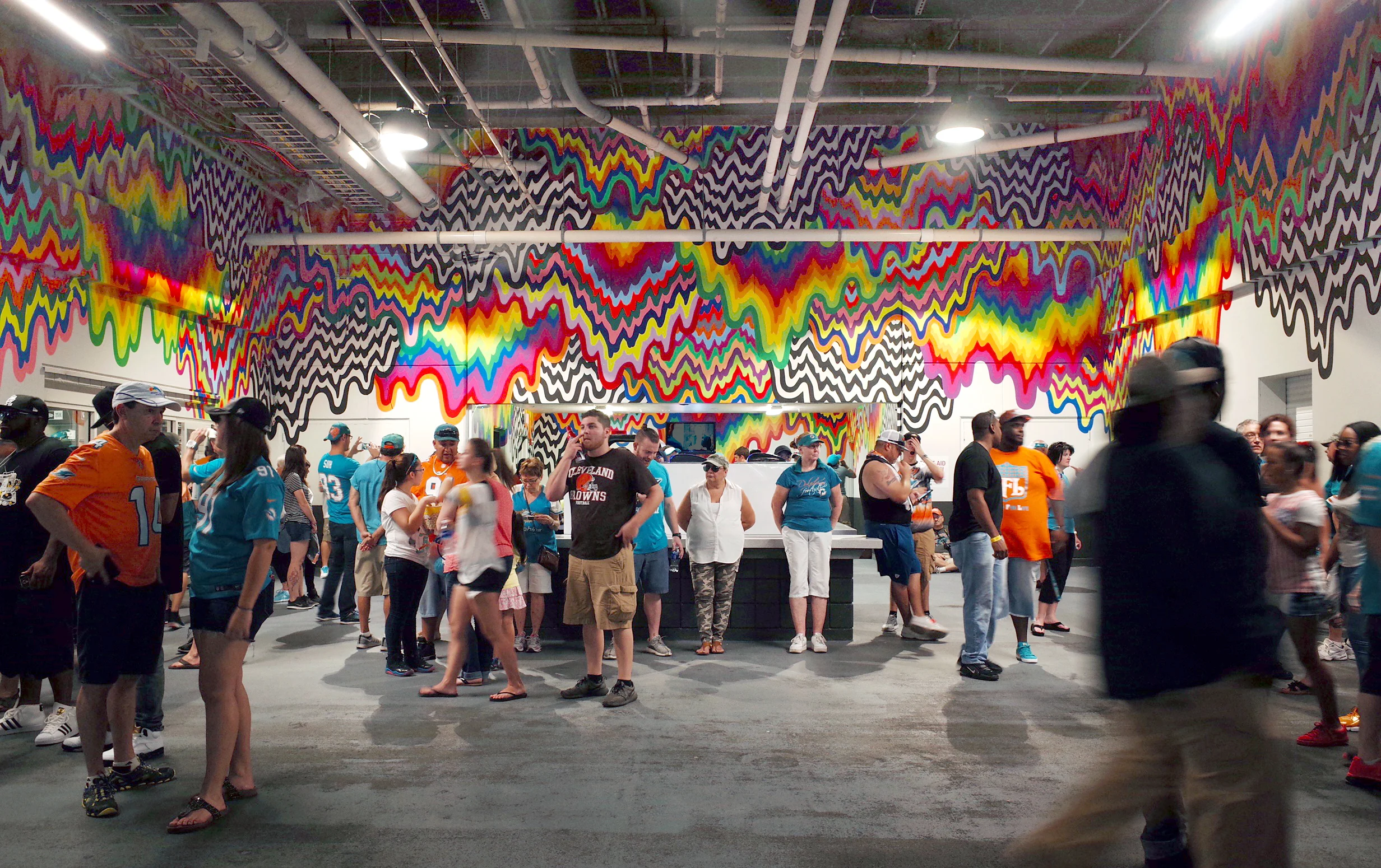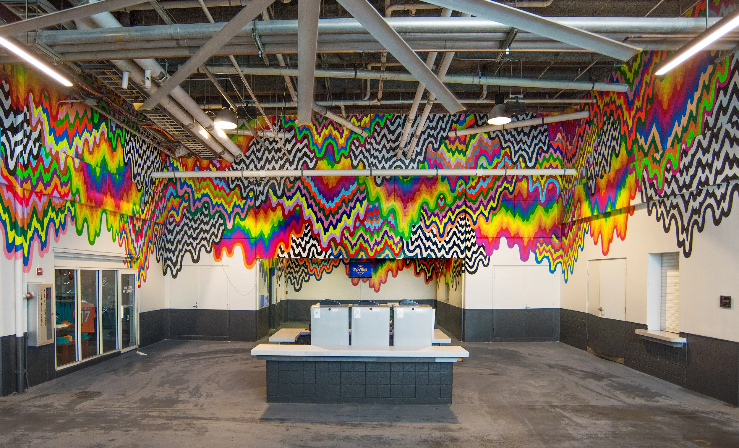 Completed "Drip Down" mural near Section 104 at the Hard Rock Stadium in Miami, FL. Organized and curated by Goldman Global Arts.
