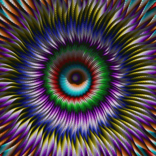 Through a myriad of colorful patterning and vibrational phases, “Mandala” reveals the infinite cycle of the universe. These sacred geometric forms portray a metaphysical representation of the cosmos. Each layer moves inwards and outwards forever in a looping cycle of creation and re-creation. This meditative work embraces the structure of plant growth, infinity and hypnotic mysticism.